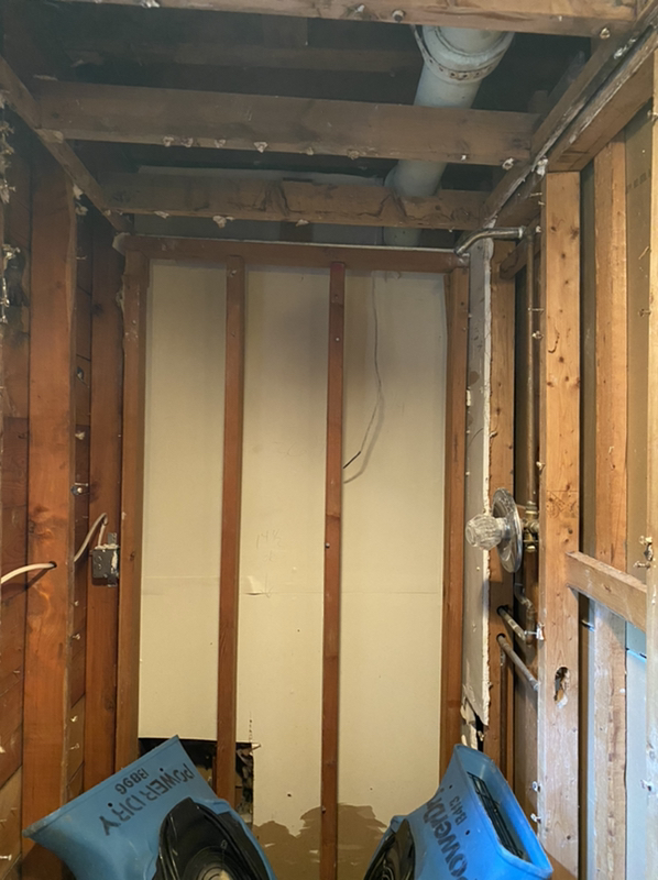 A homeowner in South Plainfield, NJ suffered from water damage due to a broken drain pipe that occurred in the bathroom. The drywall, insulation, tile, softwood materials, and cement floor were affected. Northeast Power Dry Project Manager, Angelo, went to inspect the property. Angelo took moisture readings and inspected all possible areas affected by the pipe failure. He communicated the process with the homeowner and helped them with their insurance claim. There were four air movers, one dehumidifier and one air scrubber installed to ensure proper drying.