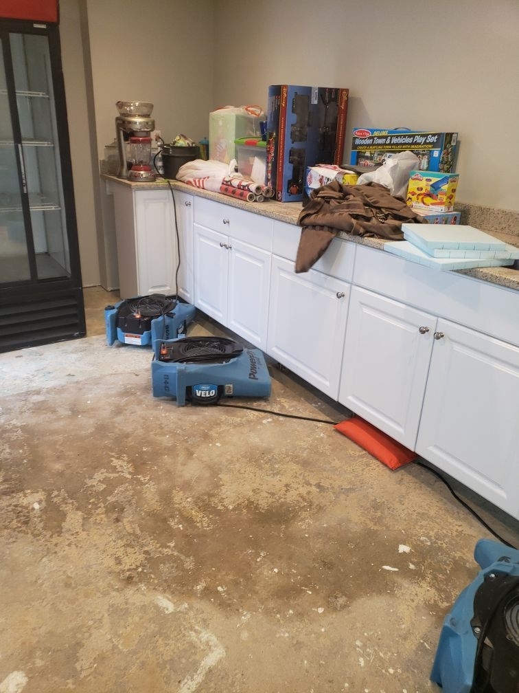 In Morristown, New Jersey, a homeowner experienced an expansion tank failure causing damage to 3 rooms. Concrete, carpet, drywall, wood framing, baseboard, cedar wood closet, and base of cabinets are the materials affected. Mike, the Project Manager arrived on-site and he immediately took action after he discussed the process with the customer. Our technicians installed 11 Air Movers, 1 Dehumidifier, and 1 air scrubber to dry the home.