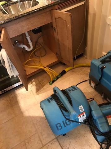 In Far Hills, New Jersey, a customer experienced a water leak from the kitchen sink. A fully furnished basement is affected and the kitchen cabinets. Other materials that are affected are hardwood flood, softwood, and concrete. When our skilled Project manager, arrived at the loss address, he immediately worked to restore the loss area. His crew installed 17 air movers, 2 dehumidifiers, and 1 air scrubber to dry the area.