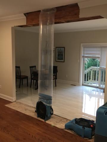 In Berkeley Heights, New Jersey, a homeowner suffered a pipe break in the shower upstairs affecting the wood flooring in the kitchen and dining area on the first floor. Northeast Power Dry project manager, Michelle, arrived on site and assessed the damage and determined that 2 levels were being affected. 2 dehumidifiers and 3 air movers were needed to dry the property effectively. The property was dry within 3 days.