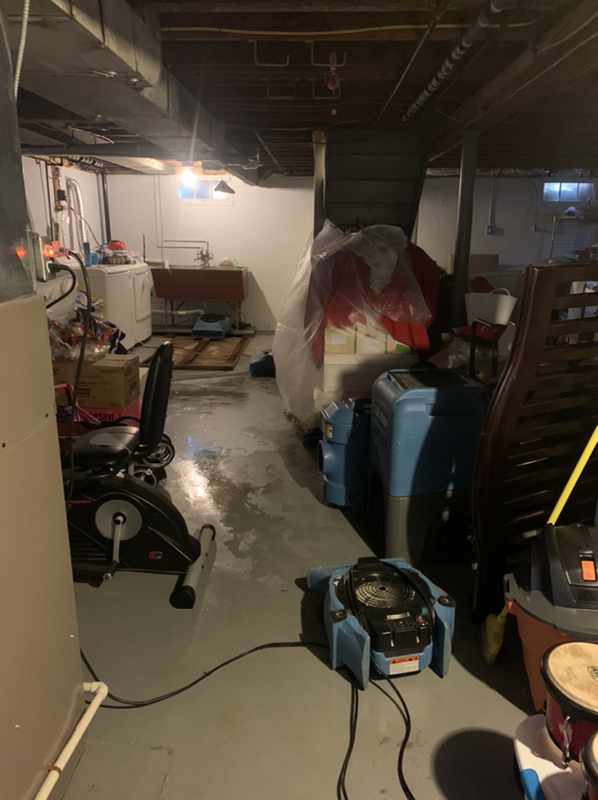 This home in Middlesex, New Jersey, suffered from a sewer back up affecting the laundry room in the basement. The concrete and the wooden platform underneath the washing machine were affected. Our Project Manager, Tom, immediately arrived at the home and thoroughly assessed the damage. Our technicians helped with the clean-up and removal of all the unsalvageable materials. Areas affected by water were deeply sanitized and drying machines were installed to effectively dry the basement.