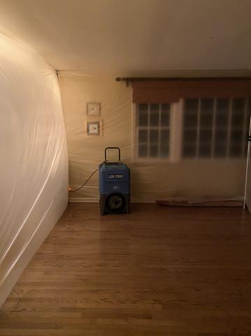 At this home in Chatham, New Jersey, the homeowner experienced a toilet overflow in the second-floor bathroom that caused damage to 3 levels of the house. The drywall, tile, hardwood, softwood, carpet, and padding materials were affected. When Scott Upshaw, Northeast Power Dry project manager, arrived at the residence, he inspected the damage thoroughly and communicated the most effective course of action to the customer. 21 air movers, 3 air scrubbers, 3 dehumidifiers, and 1 hardwood floor machine were positioned throughout the house to ensure proper drying.
